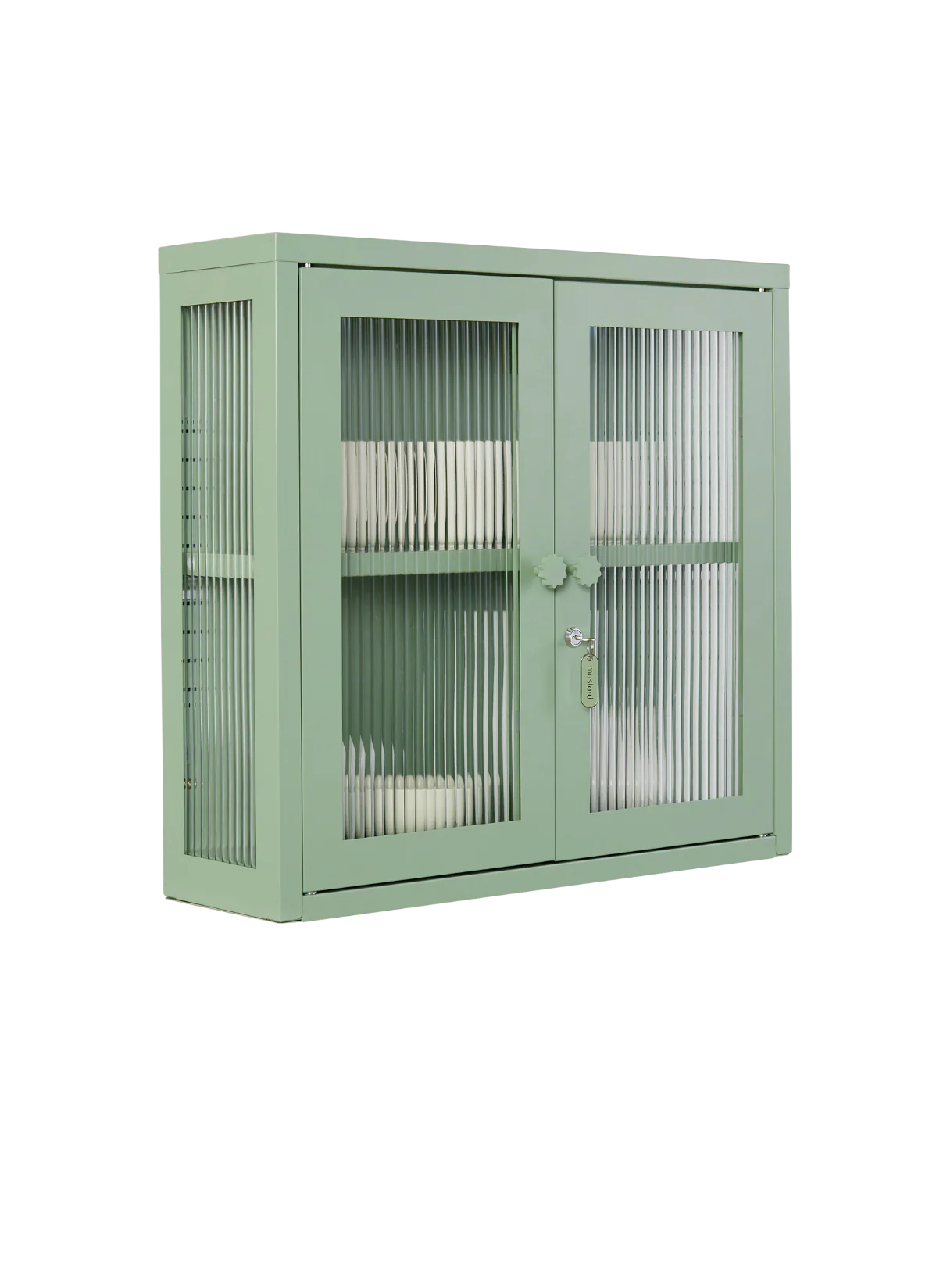 Inside, you'll find an adjustable shelf, a door bolt and a subtle embossed 'mustard', to let you know it's the real deal. Outside, fluted glass panels are set in a metal frame with medallion handles, a lock, a custom Mustard enamel keyring and wall attachment points. Screens don't always do our colours justice — order a swatch to see how it looks in your space. The Kit is our first legless locker, taking small-space storage to a whole new level (literally!) From a sexy spice cabinet to a cute coffee corner, The Kit has got it sorted.