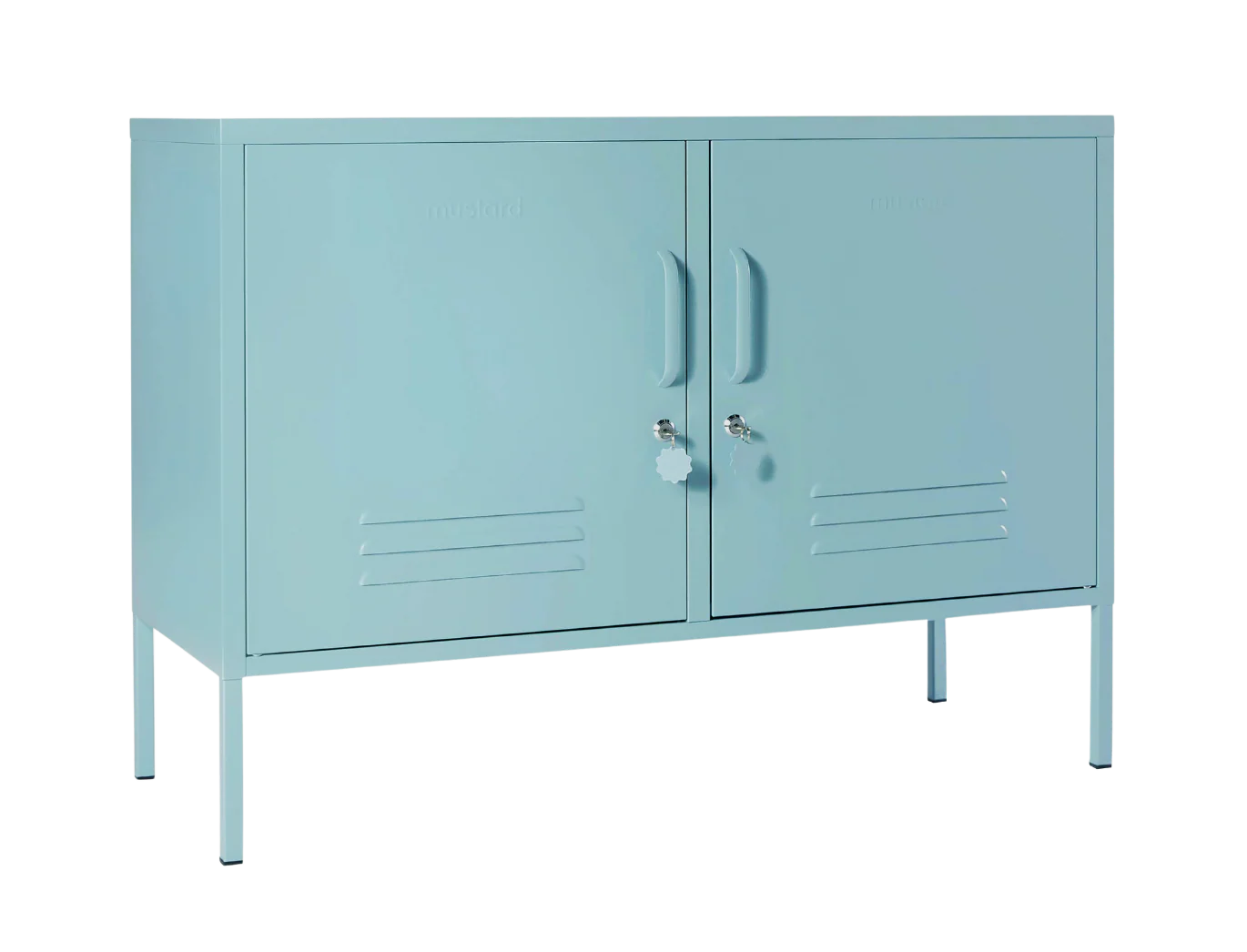 Inside, you'll find two adjustable shelves and a handy hook inside each door. On the outside, you'll find handles, locks, custom key rings, air vents, two cable holes, wall attachment points and a subtle embossed 'mustard on each door, to let you know it's the real deal. Plus, the whole locker is smooth, matte and magnetic! Screens don't always do our colours justice — order a swatch to see how it looks in your space. The Lowdown is perfectly proportioned to make the most of that little alcove in your living room, but she works just as well in the bedroom or hallway. Versatility is her middle name!