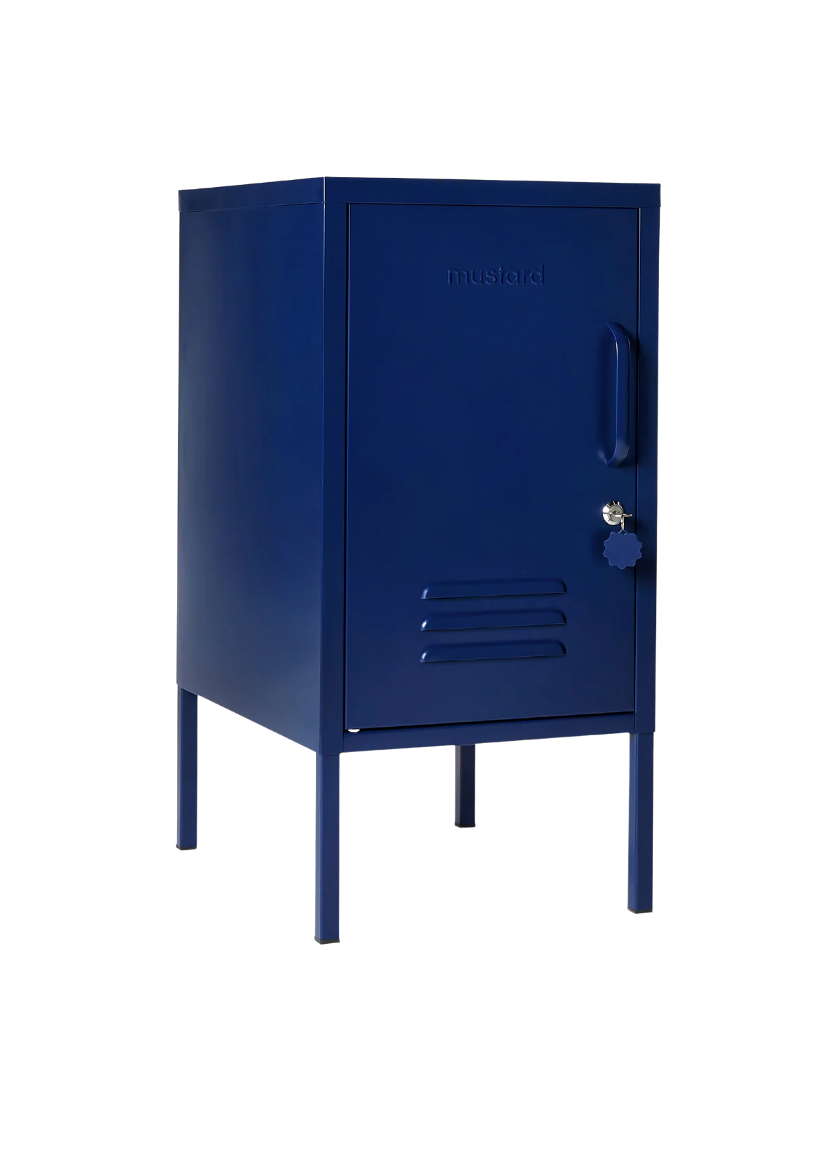 Inside, there are two adjustable shelves and one handy hook. On the outside, you'll find a handle, lock, custom keyring, air vents and a subtle embossed 'mustard', to let you know it's the real deal. The door opens to the left! Plus, the whole locker is smooth, matte and magnetic. Screens don't always do our colours justice — order a swatch to see how it looks in your space. Because good things come in small packages! The Shorty is a mini locker with lots of uses, from bedsides to offices and everywhere in between.