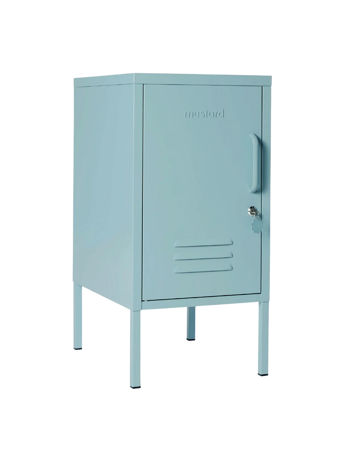 Inside, there are two adjustable shelves and one handy hook. On the outside, you'll find a handle, lock, custom keyring, air vents and a subtle embossed 'mustard', to let you know it's the real deal. The door opens to the left! Plus, the whole locker is smooth, matte and magnetic. Screens don't always do our colours justice — order a swatch to see how it looks in your space. Because good things come in small packages! The Shorty is a mini locker with lots of uses, from bedsides to offices and everywhere in between.