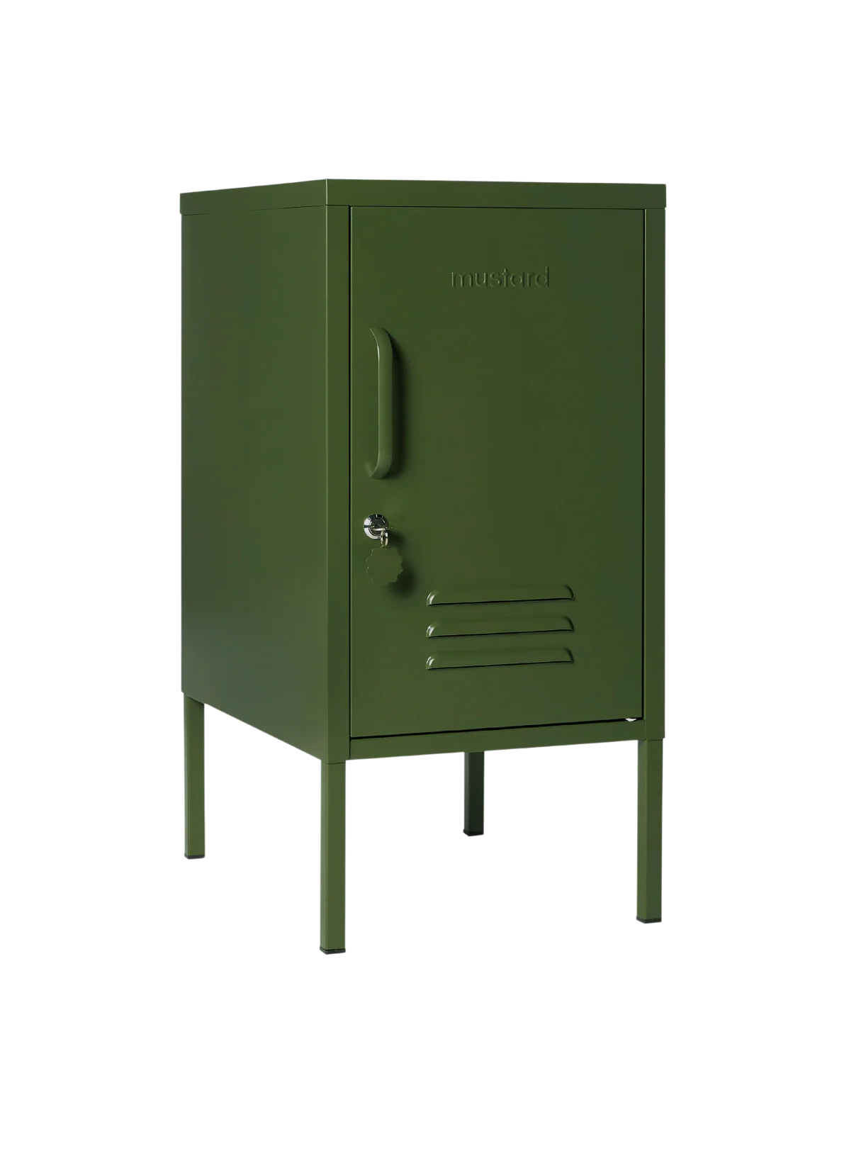 Inside, there are two adjustable shelves and one handy hook. On the outside, you'll find a handle, lock, custom keyring, air vents and a subtle embossed 'mustard', to let you know it's the real deal. The door opens to the right! Plus, the whole locker is smooth, matte and magnetic. Screens don't always do our colours justice — order a swatch to see how it looks in your space. Because good things come in small packages! The Shorty is a mini locker with lots of uses, from bedsides to offices and everywhere in between.