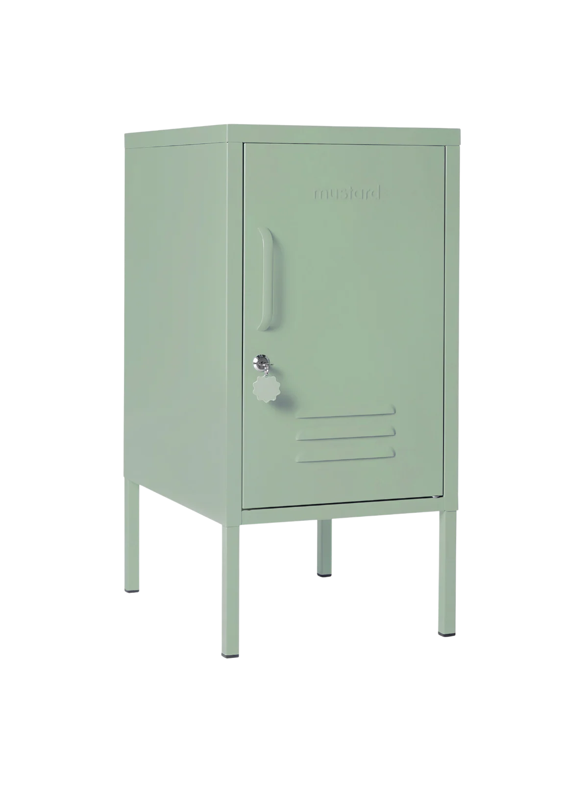 Inside, there are two adjustable shelves and one handy hook. On the outside, you'll find a handle, lock, custom keyring, air vents and a subtle embossed 'mustard', to let you know it's the real deal. The door opens to the right! Plus, the whole locker is smooth, matte and magnetic. Screens don't always do our colours justice — order a swatch to see how it looks in your space. Because good things come in small packages! The Shorty is a mini locker with lots of uses, from bedsides to offices and everywhere in between.